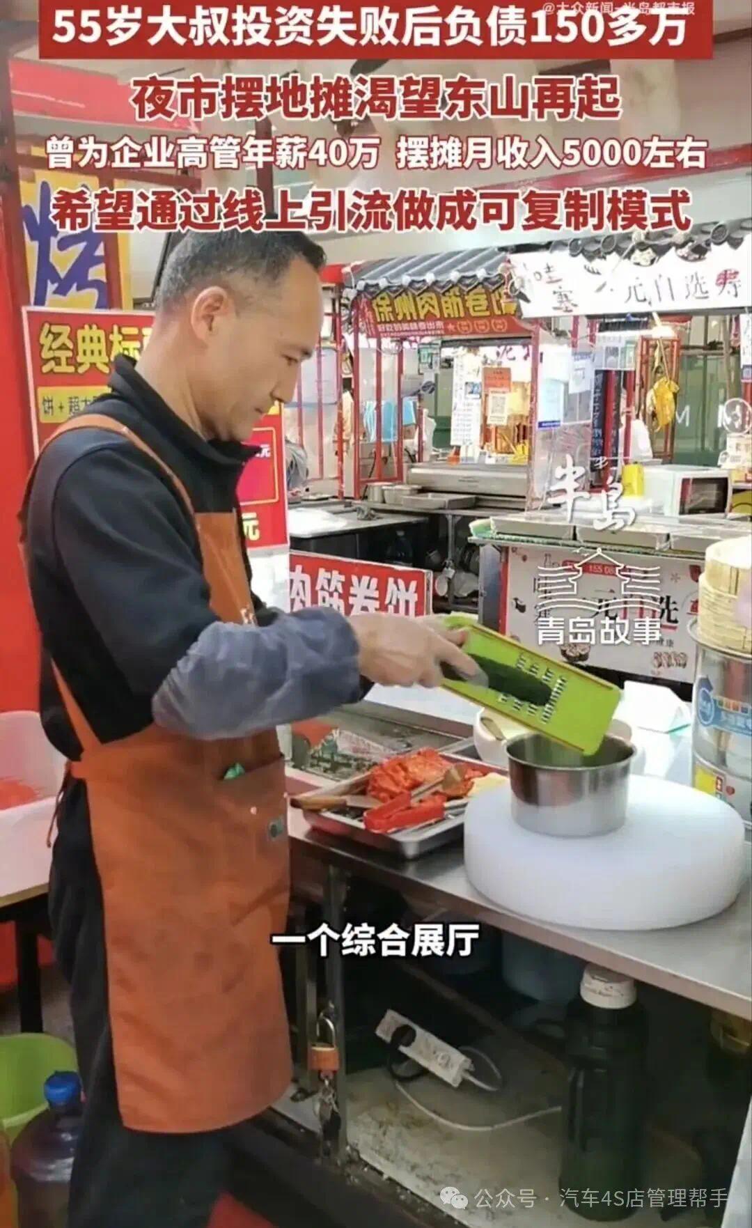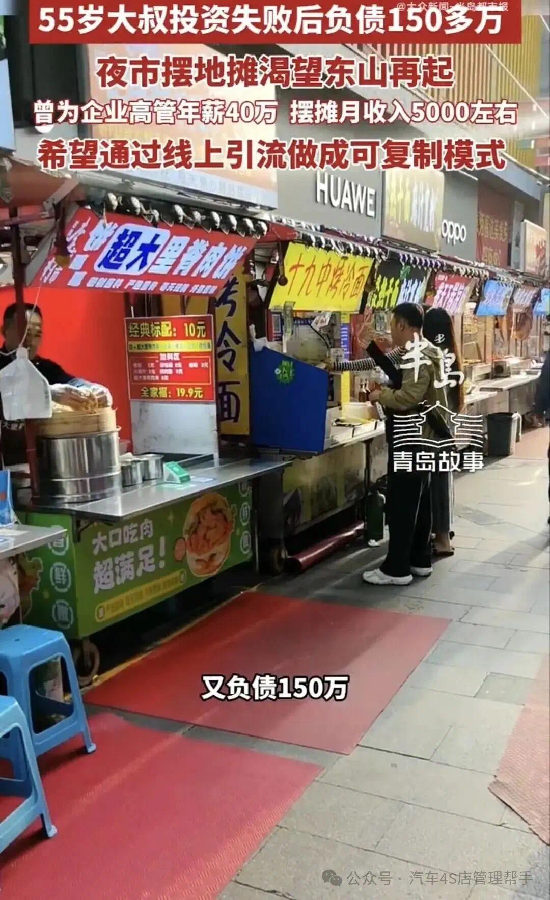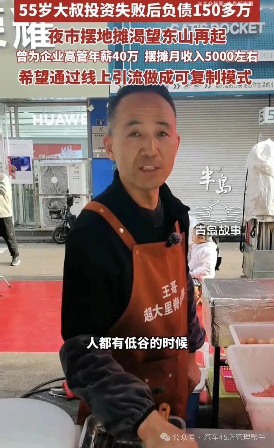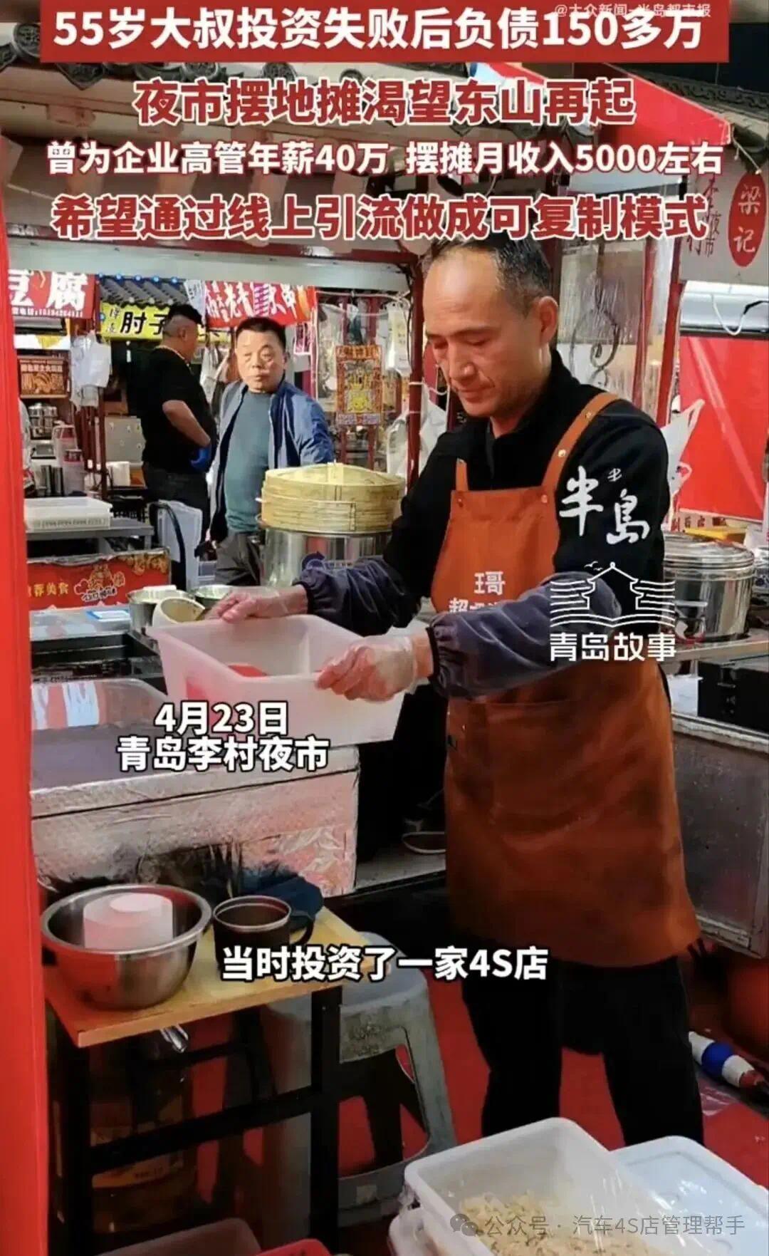 手里没有多余本钱,没法再碰重资产汽车相关生意,那就放下所有身段、抛开所有面子,从成本最低、最接地气的夜市摆摊做起。