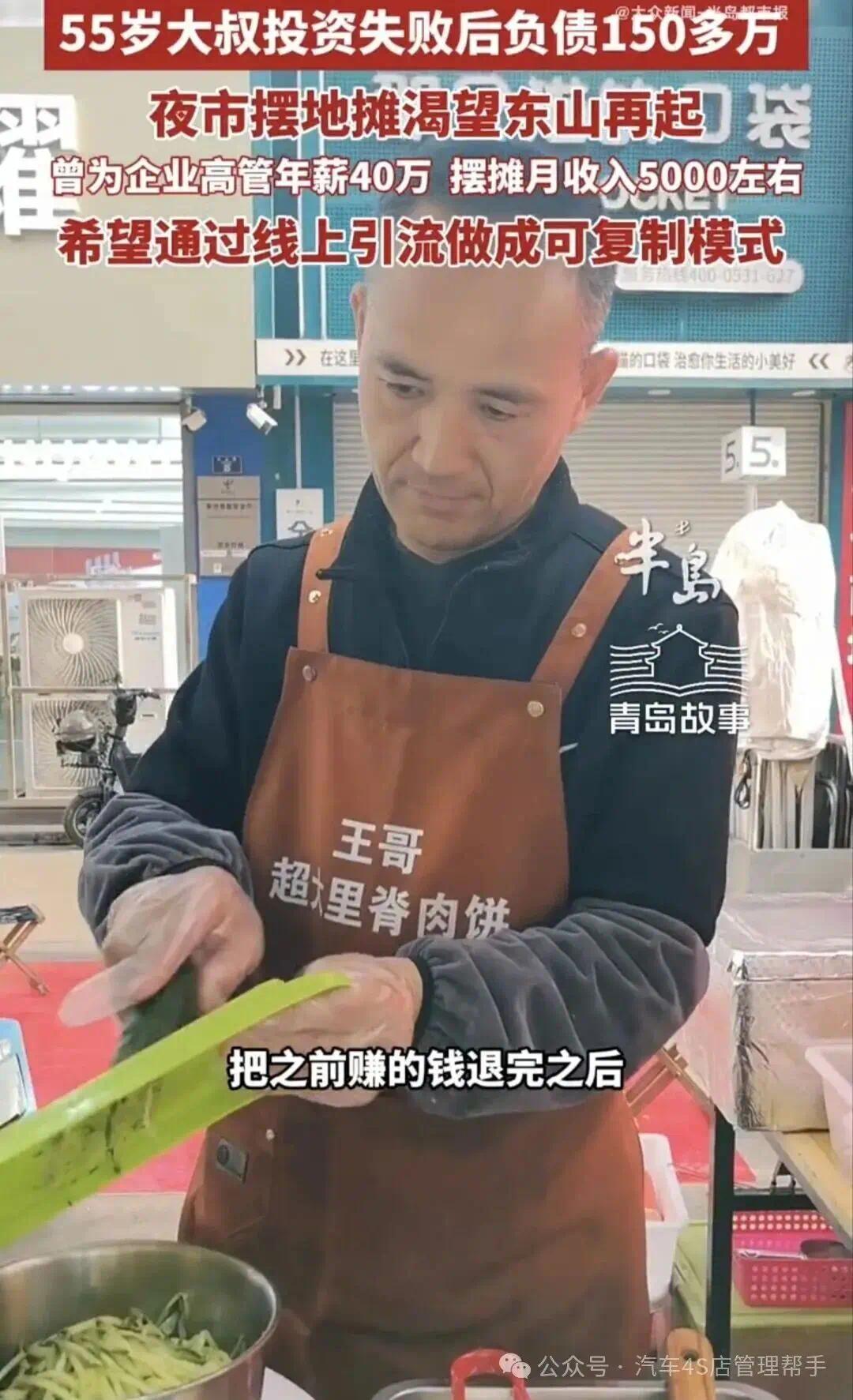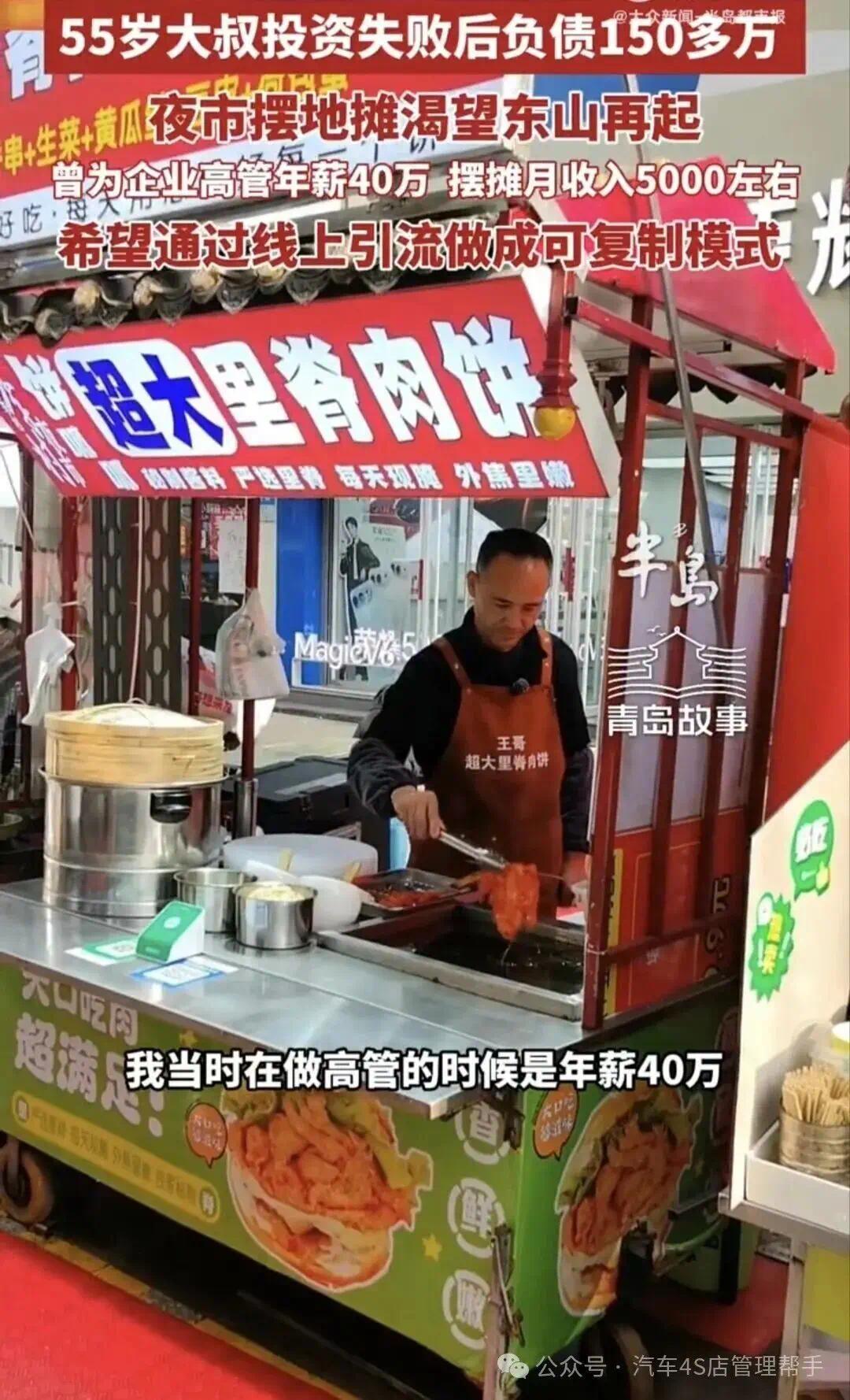近日有媒体报道了一位汽车经销商的老板,因扛不住市场寒流,4S店倒闭了,亏掉了前半生积蓄,还负债150万,转行摆摊卖肉饼的真人真事,让帮主感触良多!